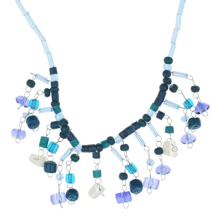 Колье из бисера и кристаллов, цвет темно-синий UG127