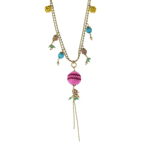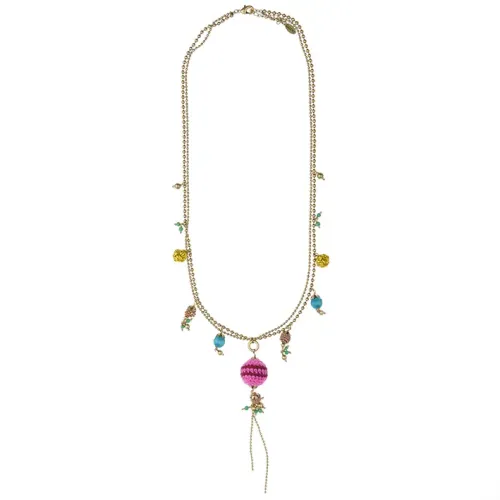 Колье из бижутерного сплава и текстиля с бусинами и кристаллами.