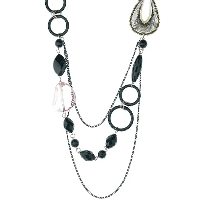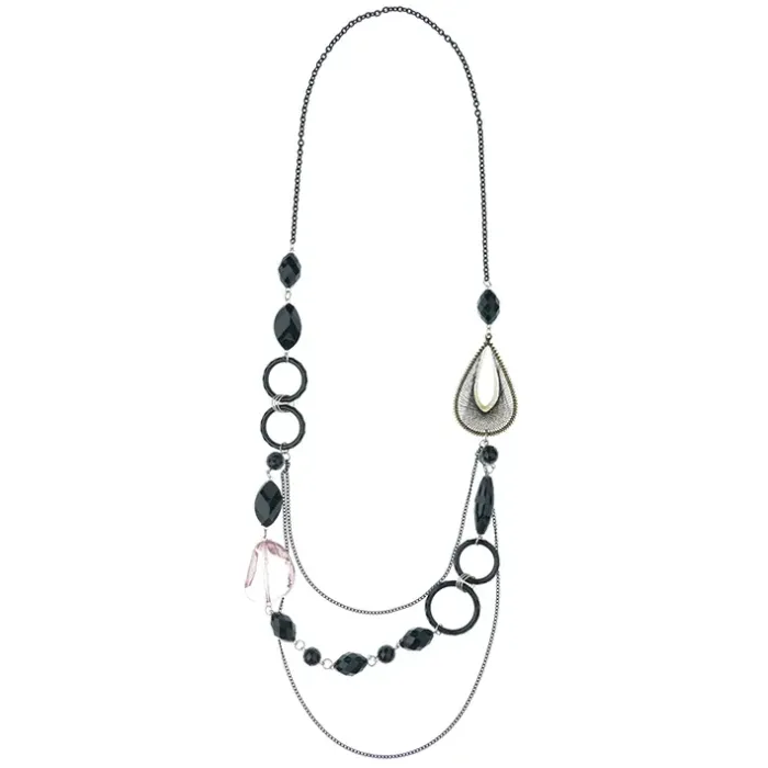 Колье из бижутерного сплава с разноцветными кристаллами и покрытием под серебро.