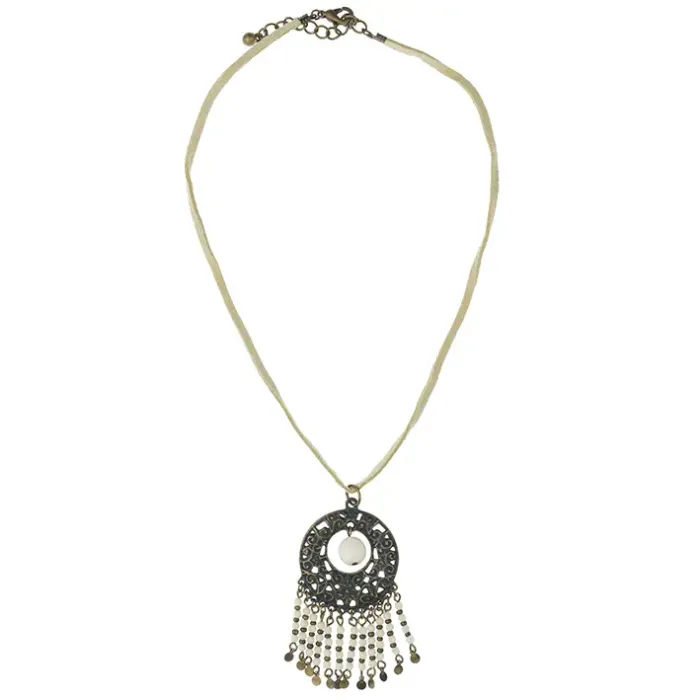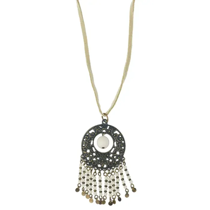 Колье из бижутерного сплава с покрытием под бронзу, украшенное натуральными камнями и бисером.