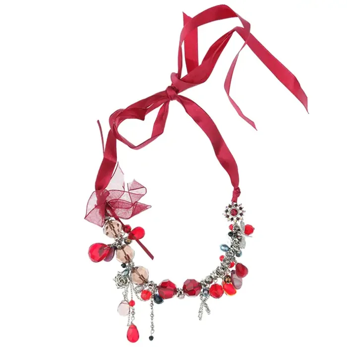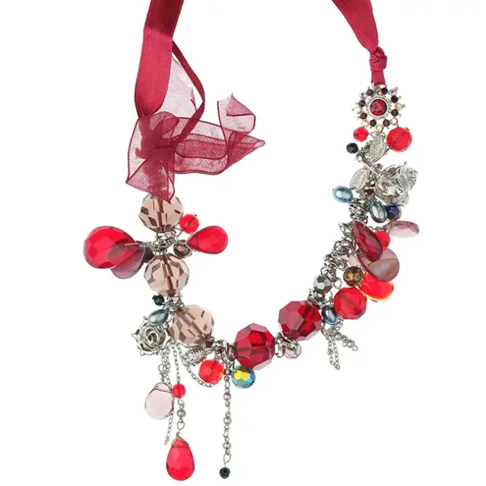 Колье из бижутерного сплава со стразами и кристаллами, с покрытием под серебро.