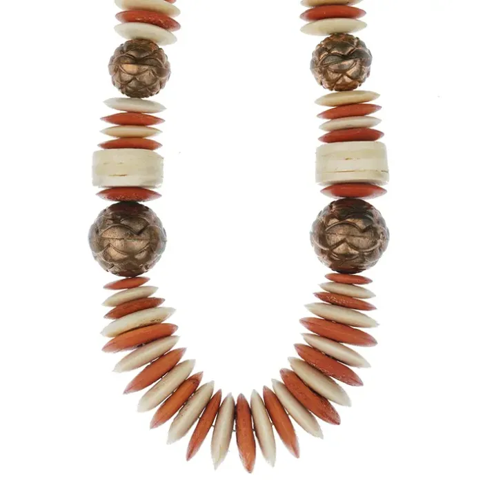 Это стильное колье из бижутерного сплава и перламутра станет ярким акцентом в любом образе. Длина изделия составляет 56 см, что позволяет удобно носить его как на голое тело, так и поверх одежды. Ширина колье — 2,5 см, а толщина — 9 мм, что придаёт ему выразительность и заметность. Перламутр добавляет изделию лёгкий блеск и элегантность, делая его идеальным выбором для особых случаев или повседневной носки. Колье может стать замечательным подарком для близких или прекрасным дополнением к личной коллекции аксессуаров.