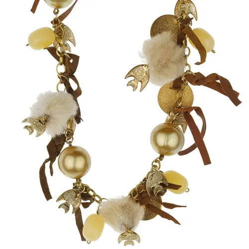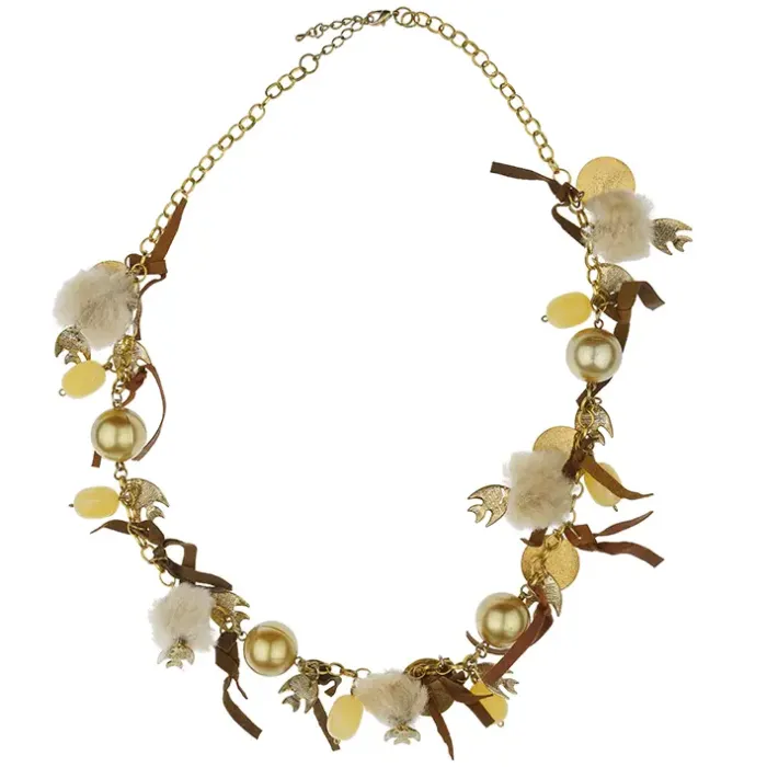 Материал и изготовление: Бижутерный сплав с перламутровыми элементами и меховым покрытием под бронзу.