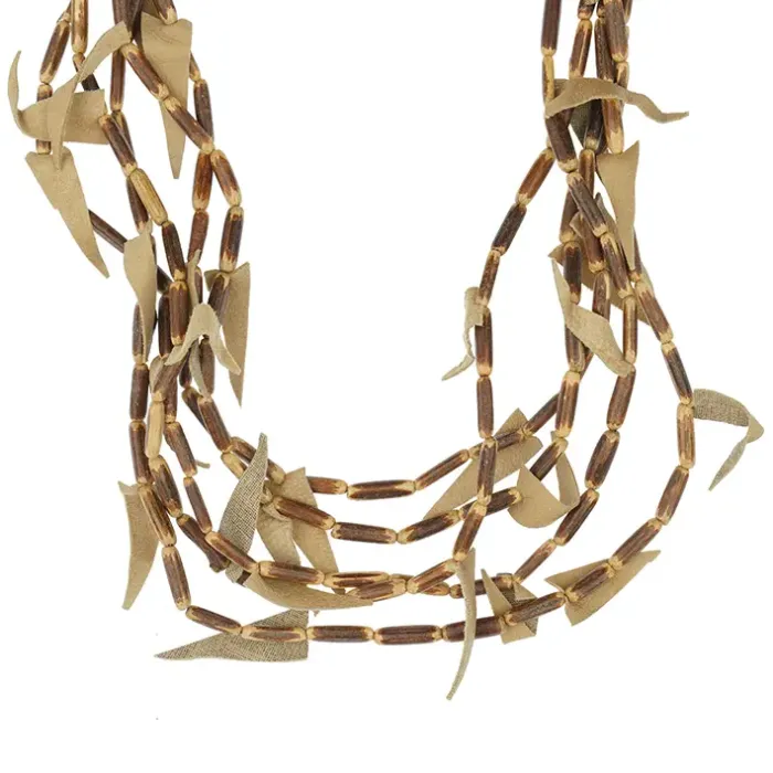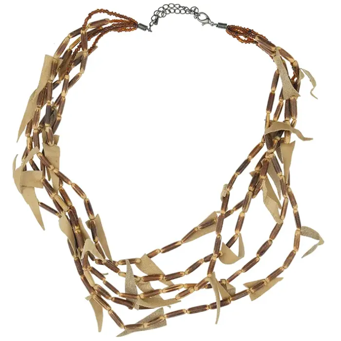 Колье из бижутерного сплава, натурального дерева и кожи.