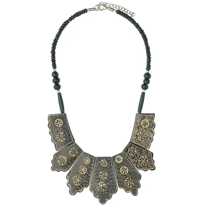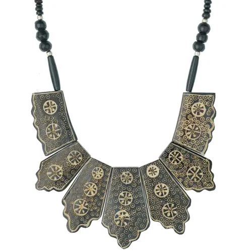Колье из бижутерного сплава, кости и дерева с пластинчатым дизайном.