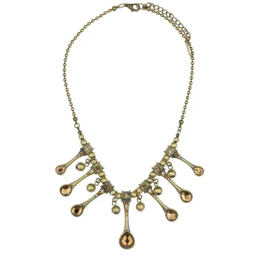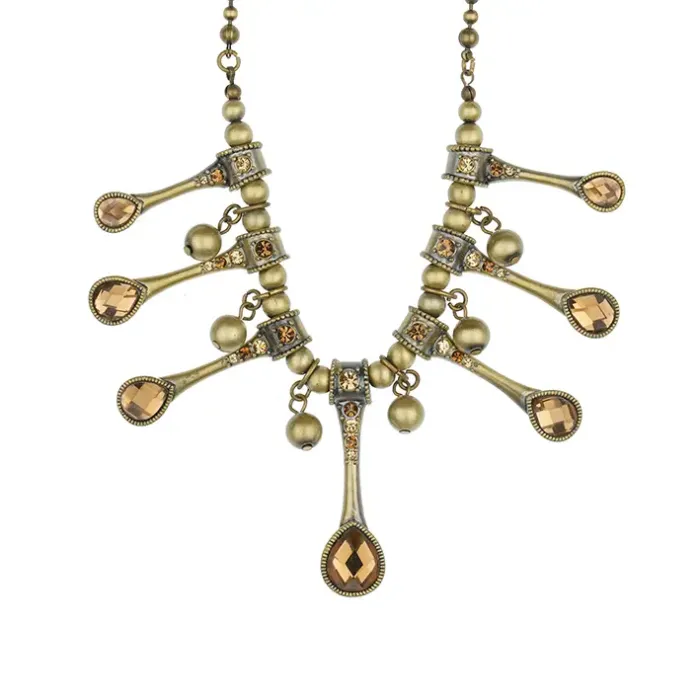 Колье из бижутерного сплава с покрытием под бронзу и вставками из страз и кристаллов.