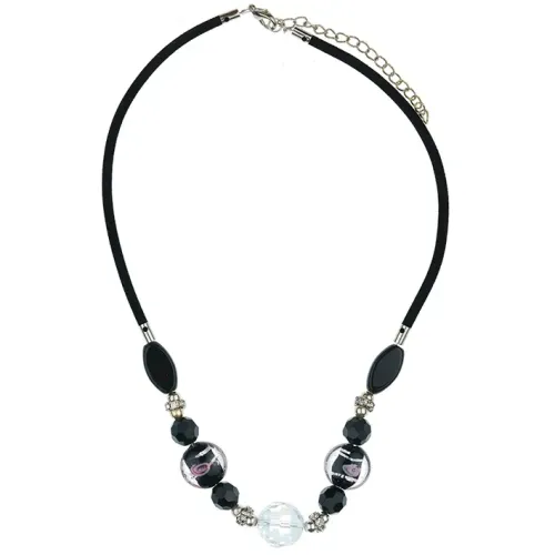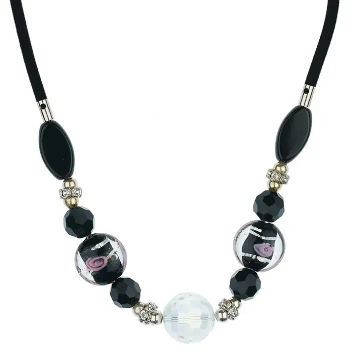 Колье из бижутерного сплава, текстиля и стекла с вставками из страз.