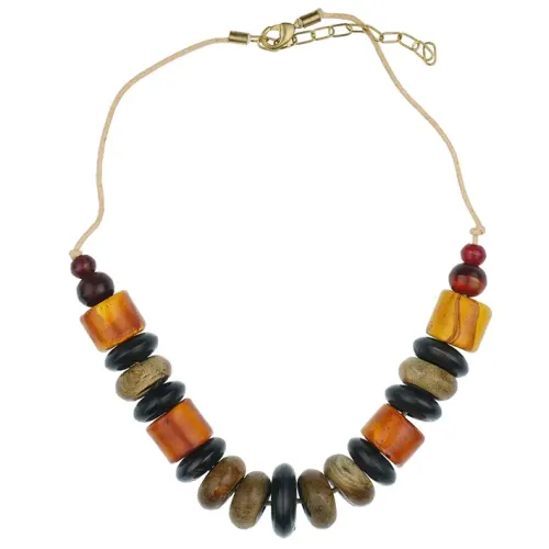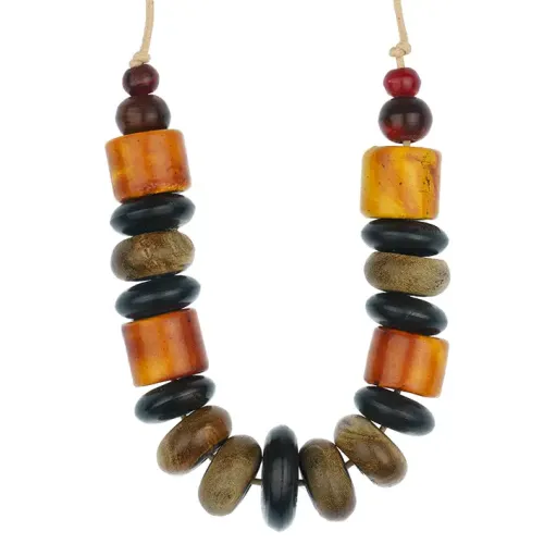Колье из бижутерного сплава, дерева и пластика с бусинами и кристаллами.