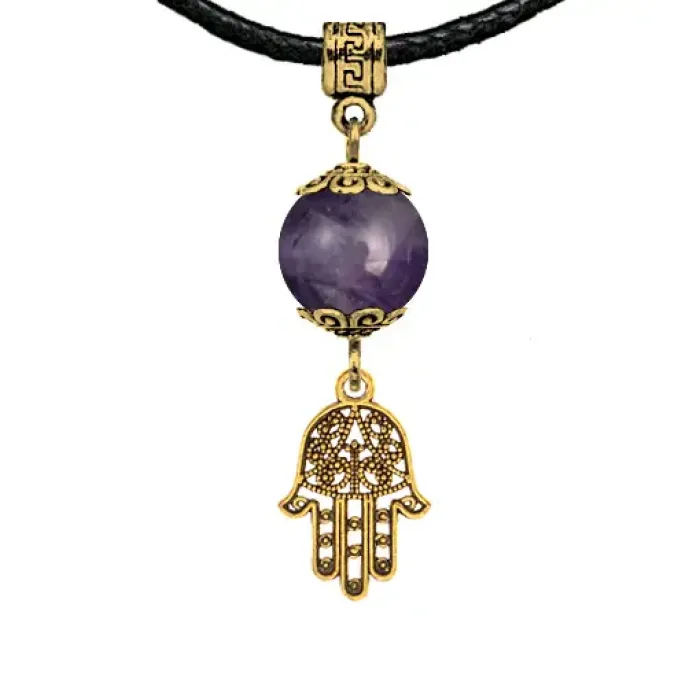 Амулет Хамса — это символ защиты и гармонии, который традиционно используется для оберега от сглаза и негативных влияний. Изготовленный из бижутерного сплава с покрытием под золото, он дополнен натуральным камнем аметистом, известным своими свойствами приносить мир и равновесие. Основные особенности: