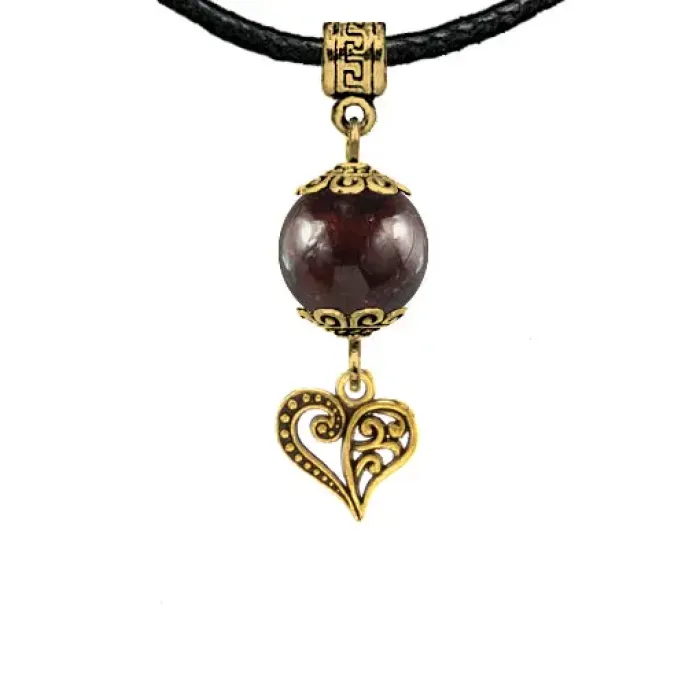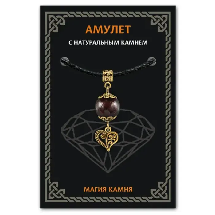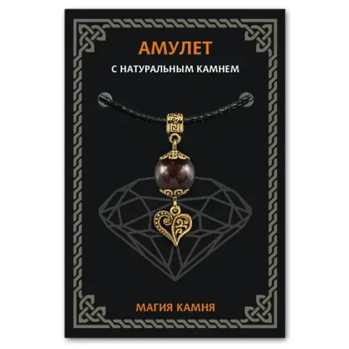 Амулет Сердце, выполненный из граната, олицетворяет любовь и семейное счастье. Этот камень традиционно ценится за свою способность вдохновлять на творчество и укреплять верность в отношениях. Он символизирует страсть, силу и преданность, а также может служить защитой от врагов и измены.