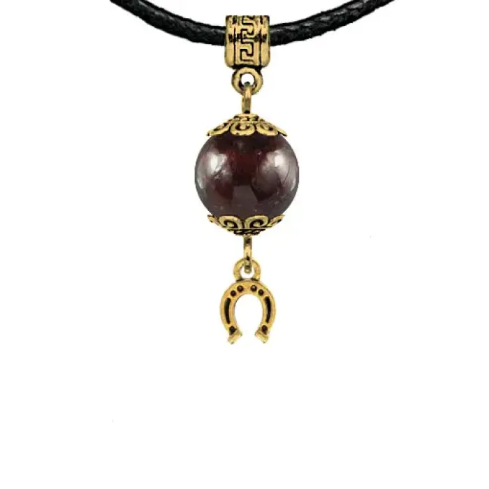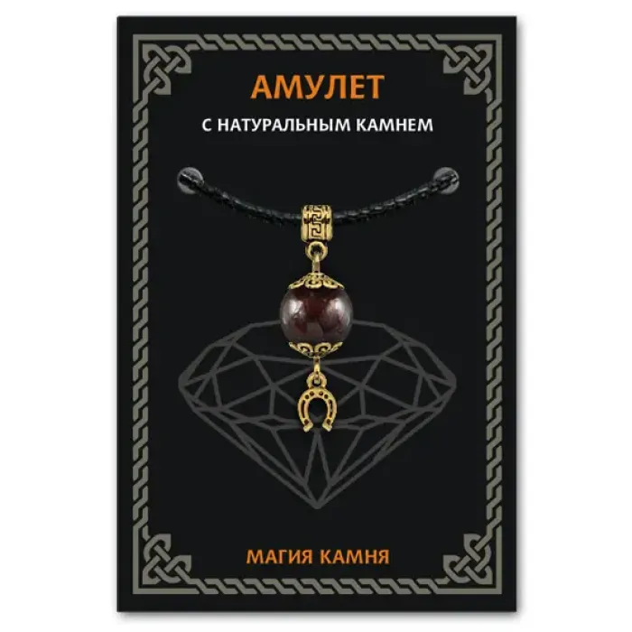 Амулет Подкова с натуральным гранатом — это не просто украшение, а символ удачи и защиты. Гранат традиционно ассоциируется с творчеством, страстью и верностью, что делает его идеальным подарком для близких. Этот амулет из коллекции Магия камня 2 выполнен из бижутерного сплава с покрытием под золото и дополнен черным ХБ шнурком, что придаёт ему стильный вид.