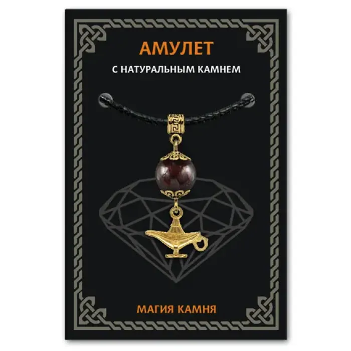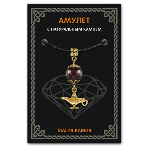 Амулет 'Волшебная лампа' — это не просто украшение, а мощный символ исполнения желаний. Гранат, используемый в этом амулете, традиционно ценится за свою способность вдохновлять на творчество и укреплять верность в отношениях. Он олицетворяет страсть и силу, способствует достижению целей и защищает от негативных влияний.