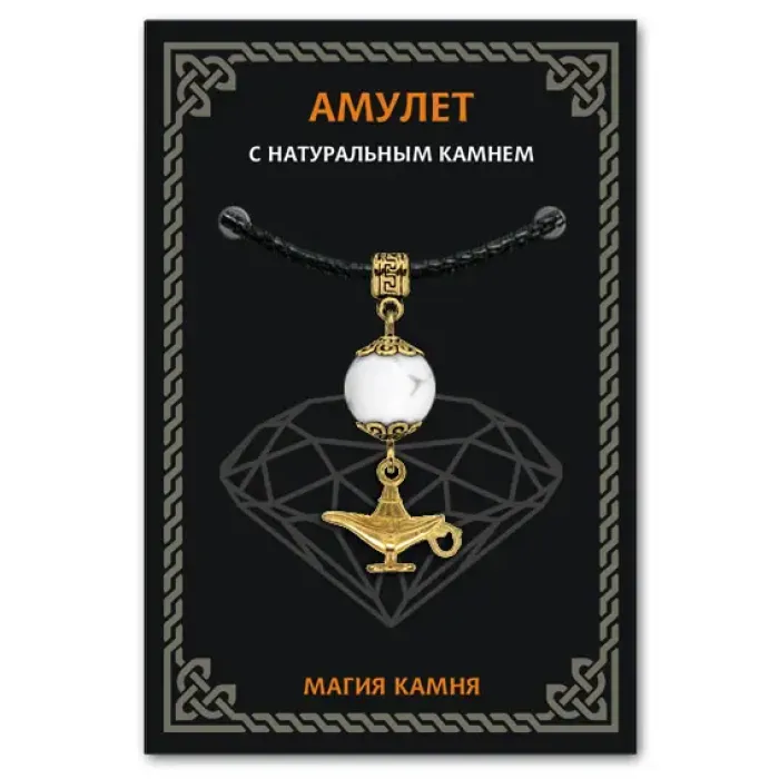 Амулет Волшебная лампа — это уникальное украшение, наполненное символикой и значением. Кахолонг, используемый в этом амулете, традиционно ассоциируется с добром, гармонией и семейным счастьем. Он считается мощным защитником от негативной энергии и помогает в достижении изобилия и плодородия.
