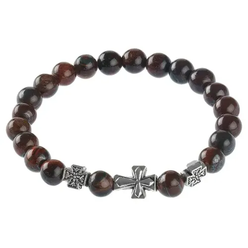 Браслет "Спаси и сохрани" — это православный стрейч-браслет, выполненный из натурального камня Бычий глаз. Этот уникальный аксессуар символизирует силу, творчество и развитие, а также помогает раскрыть потенциал и достичь спокойствия. Внутренний диаметр браслета составляет 5,2 - 5,5 см, а диаметр каменных бусин — 8 мм.