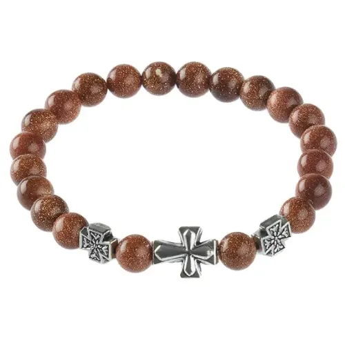 Браслет Спаси и сохрани с синт. камнем Коричневый авантюрин BSV1-08