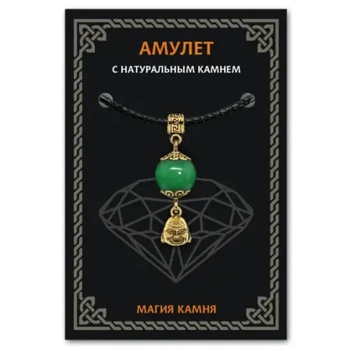 Амулет «Бог богатства» из коллекции Магия камня 2 символизирует изобилие и благополучие. Нефрит, используемый в этом изделии, ценится за свою доброту, мужество и терпение. Он традиционно ассоциируется с семейным счастьем и защитой от сглаза и болезней.