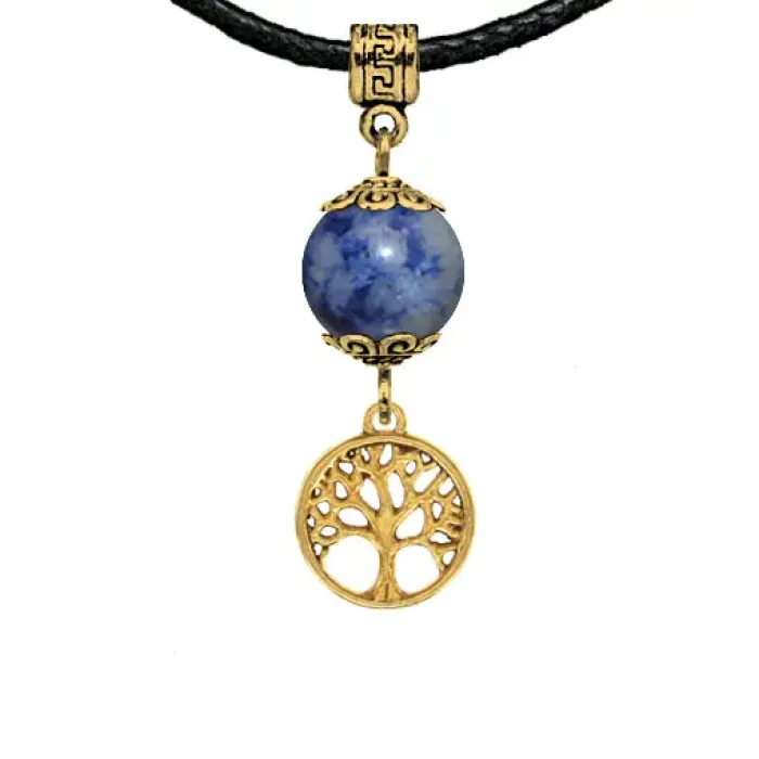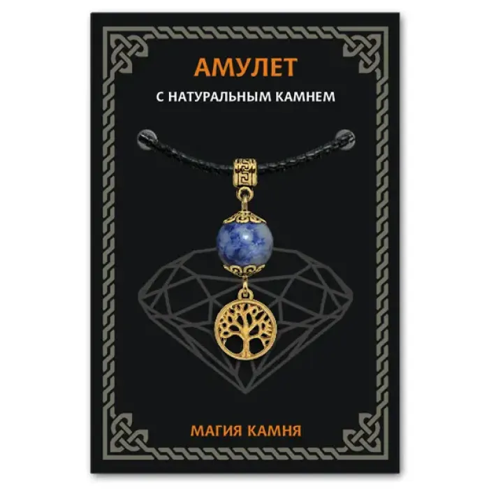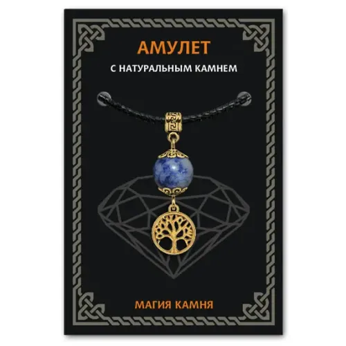 Амулет Дерево жизни с натуральным камнем содалит символизирует волю, мужество и гармонию. Этот уникальный аксессуар традиционно используется для защиты от страхов и неудач, а также способствует достижению целей. Изготовленный из бижутерного сплава с покрытием под золото, амулет дополнен черным хлопковым шнурком, что делает его удобным для ношения. Вкладыш содержит краткие описания значений всех камней и подвесок-талисманов, а также указывает наименование камня на обратной стороне. Упакован в прозрачный полипропиленовый пакет с европодвесом, этот амулет станет прекрасным подарком или личным оберегом.