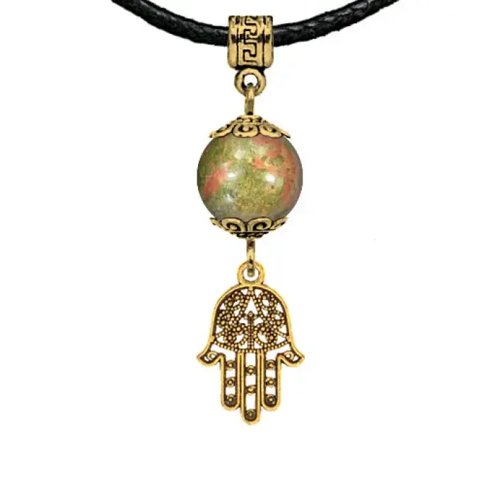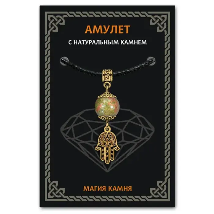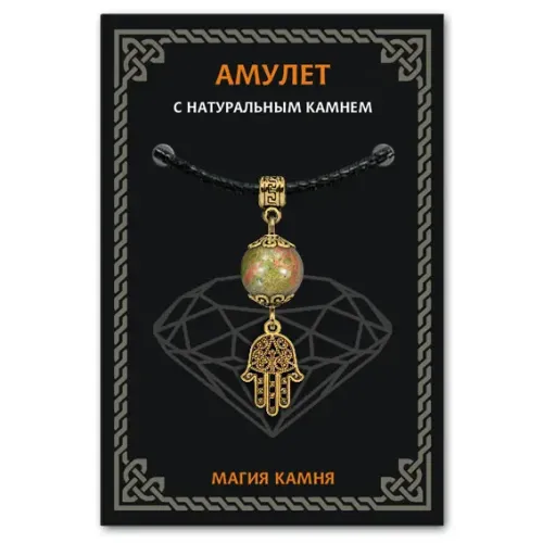 Амулет Хамса — это символ защиты и гармонии, который традиционно используется для оберега от сглаза и злых сил. Изготовленный из бижутерного сплава с покрытием под золото и натурального камня унакит, этот амулет сочетает в себе красоту и мощные энергетические свойства.