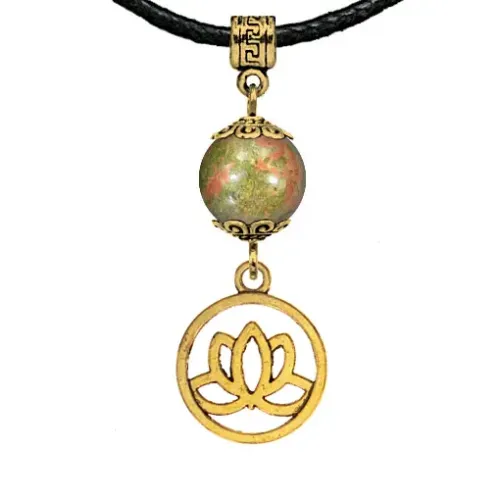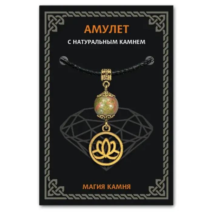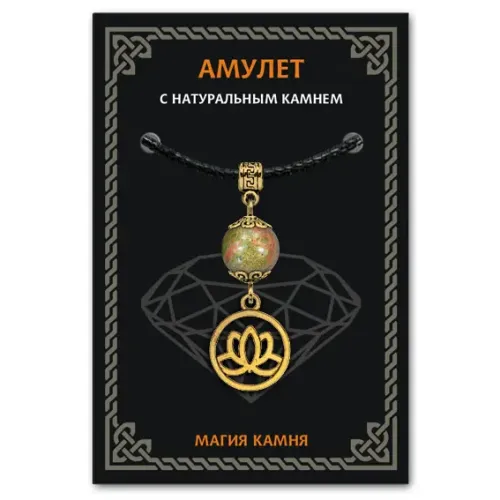 Амулет Лотос — это символ гармонии и развития, выполненный из унакита, который традиционно ценится за свою защитную силу и способность привносить любовь и знания. Этот амулет помогает в решении проблем и поддерживает сердечную чакру.
