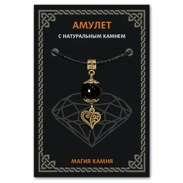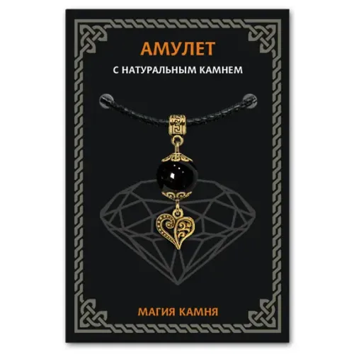 Амулет "Сердце" из коллекции "Магия камня 2" символизирует любовь и семейное счастье. Изготовленный из чёрного агата, этот амулет традиционно ценится за свою способность приносить финансовый успех и умиротворение. Он служит защитой от негатива, зависти и стресса, создавая атмосферу покоя в жизни. Состав: бижутерный сплав с покрытием под золото и натуральный камень. На обратной стороне вкладыша указано наименование камня, а сам вкладыш содержит краткие описания значений всех камней и подвесок-талисманов. Амулет упакован в прозрачный полипропиленовый пакет с европодвесом, а также включает в себя чёрный ХБ шнурок для удобства ношения.