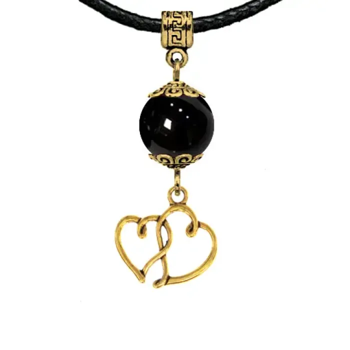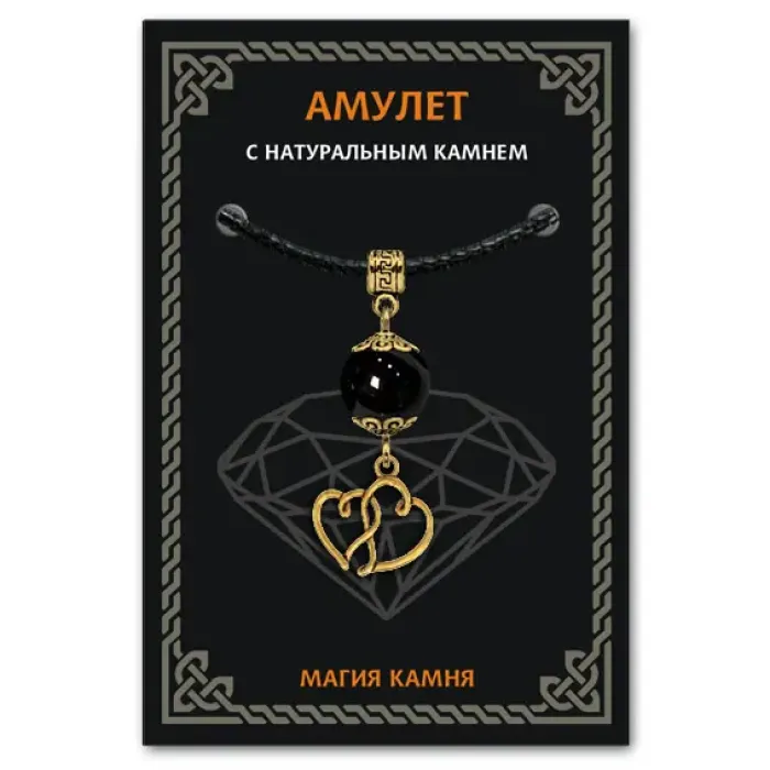 Амулет Два сердца (любовь и семейное счастье), черный агат MKAG-33-2042