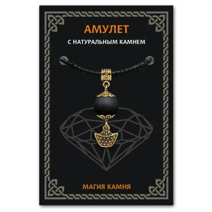 Амулет Золотой слиток из коллекции Магия камня 2 символизирует богатство и удачу. Изготовленный из бижутерного сплава с золотым покрытием и натурального шунгита, этот амулет не только привлекает внимание, но и обогащает энергетику владельца. Шунгит традиционно ценится за свои защитные свойства: он помогает справиться с негативной энергией, сглазом и вредным излучением. В комплекте идет чёрный ХБ шнурок для удобства ношения, а также вкладыш с описанием значений камней и подвесок-талисманов. Упаковка выполнена в прозрачном полипропиленовом пакете с европодвесом, что делает его отличным подарком или сувениром.