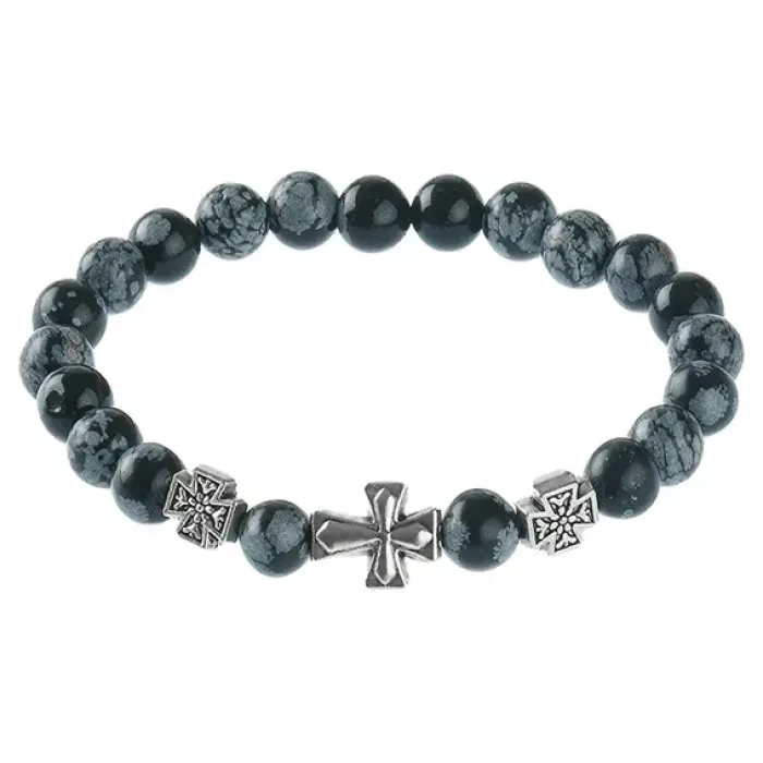 Православный браслет из натурального камня, выполненный в форме стрейча, символизирует защиту и поддержку на жизненном пути. Обсидиан, используемый в этом изделии, традиционно ценится за свои свойства: он помогает в поиске истины и выборе правильного направления, способствует самоанализу и уверенности в себе.