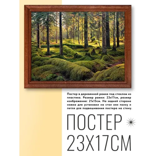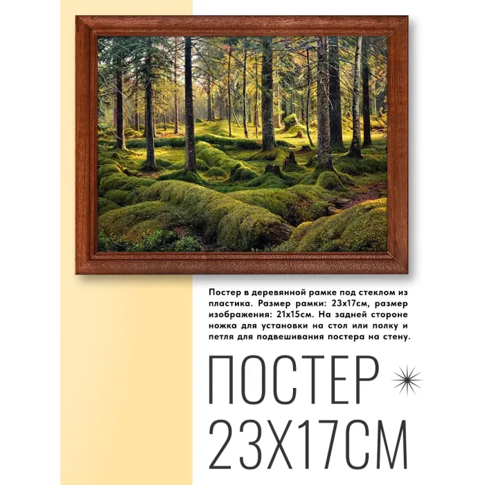 Постер в рамке 22х17см Иван Иванович Шишкин - Старый валежник. Лесное кладбище (1893) POSG-0154