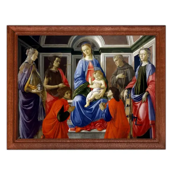 Эта репродукция картины Сандро Боттичелли 'Мадонна с Младенцем и шестью святыми' станет изысканным украшением любого интерьера. Она выполнена в деревянной рамке под пластиковым стеклом, что обеспечивает долговечность и защиту изображения.