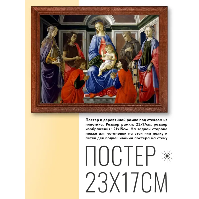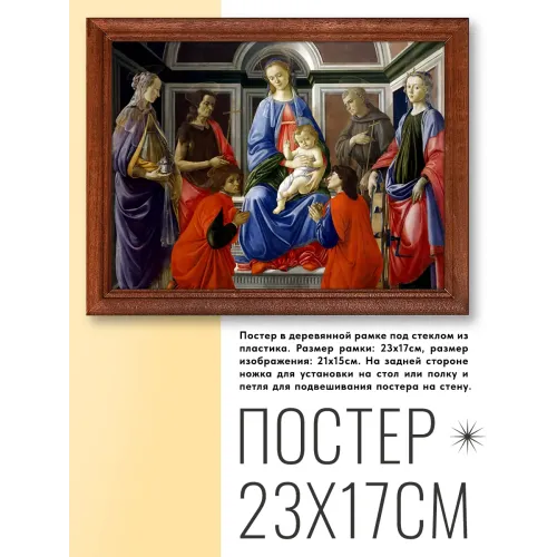 Постер в рамке 22х17см Сандро Боттичелли - Мадонна с Младенцем и шестью святыми (ок.1470) POSG-0157