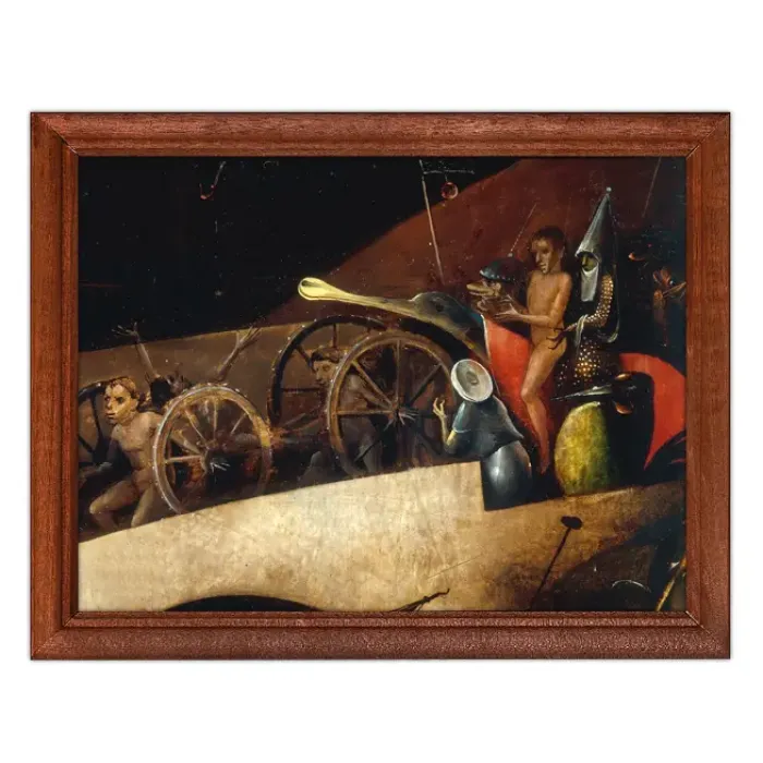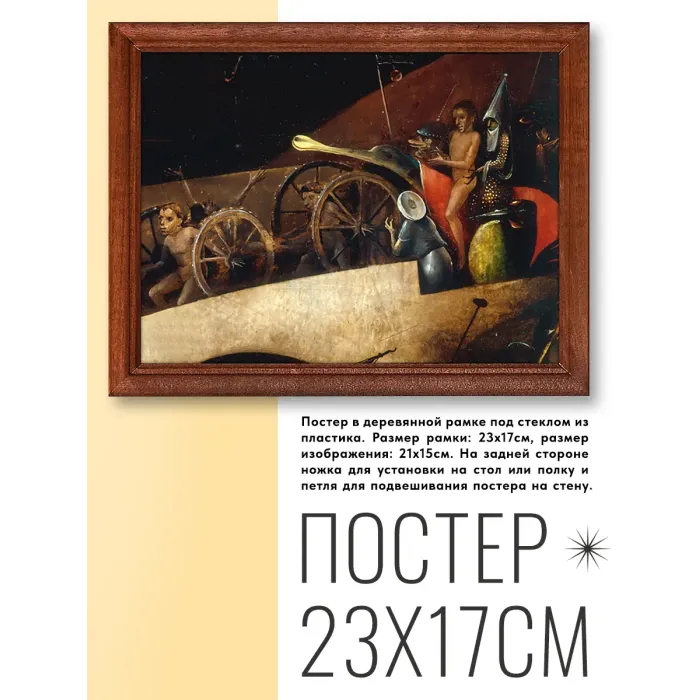 Постер в рамке с изображением фрагмента картины "Страшный суд" Иеронима Босха — это не только элемент декора, но и произведение искусства, которое привносит атмосферу средневековой живописи в любое пространство. Репродукция выполнена на качественном материале и оформлена в стильной деревянной рамке под пластиковым стеклом.