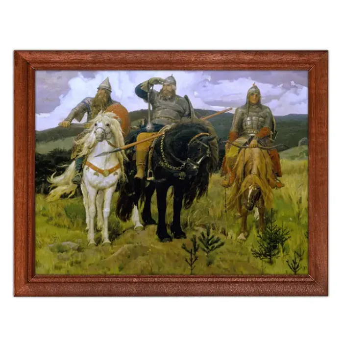 Постер в рамке с репродукцией знаменитой картины Виктора Михайловича Васнецова «Три богатыря» станет ярким акцентом в любом интерьере. Этот произведение искусства, выполненное с высоким качеством, не только украсит пространство, но и подчеркнет культурное наследие России.