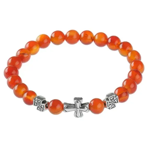 Браслет Спаси и сохрани — это православный стрейч-браслет, выполненный из натурального камня сердолик. Этот браслет не только стильный аксессуар, но и символ защиты и силы. Внутренний диаметр составляет примерно 5,2 - 5,5 см, а диаметр каменных бусин — 8 мм.