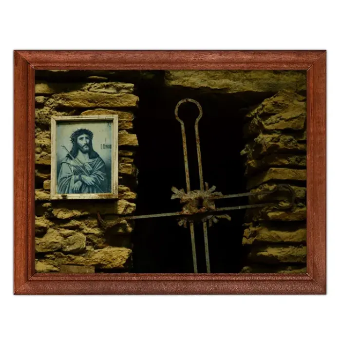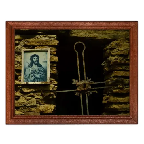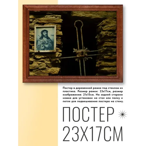 Постер в рамке 22х17см Крест и изображение Спасителя POSG-0182