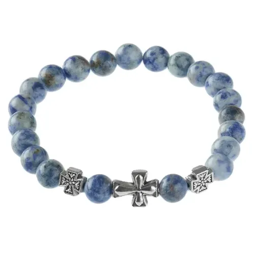 Православный стрейч-браслет из натурального камня Содалит, символизирующий волю и мужество. Этот браслет не только красивый аксессуар, но и оберег, который традиционно используется для защиты от страхов и неудач.
