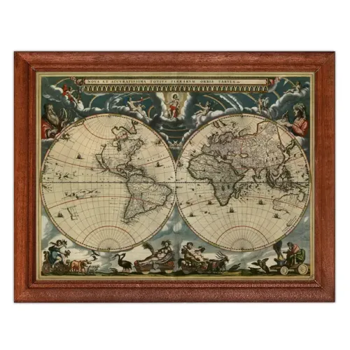 Постер в рамке с репродукцией исторической карты мира Яна Виллемса Блау 1664 года.