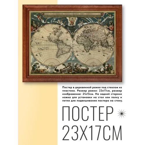 Постер в рамке 22х17см Ян Виллемс Блау - Карта мира (1664) POSG-0193