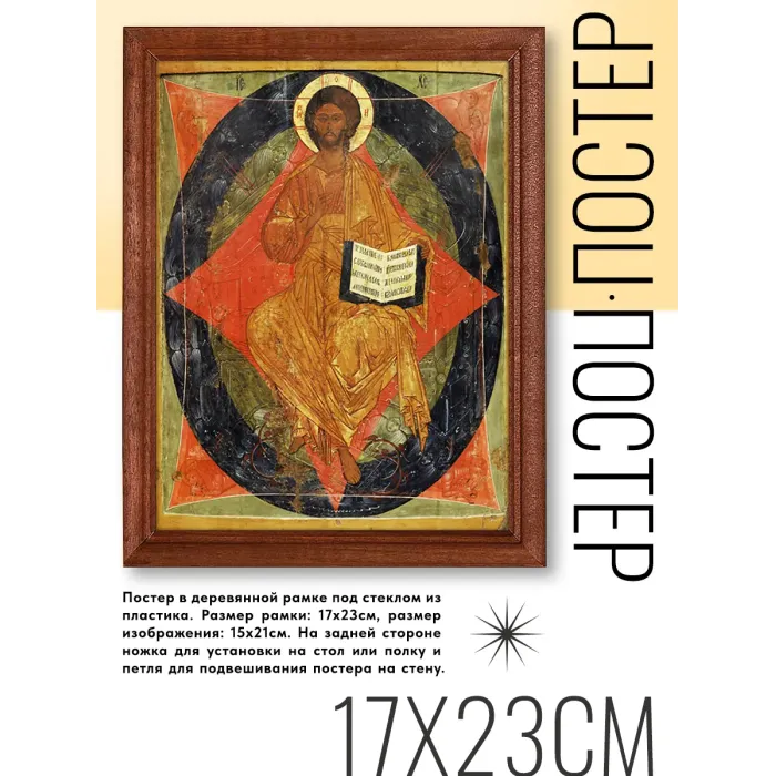 Постер в рамке «Спас в силах» — это не только стильный элемент декора, но и символ духовного вдохновения. Репродукция иконы, выполненная с вниманием к деталям, станет прекрасным дополнением интерьера. Основные особенности: