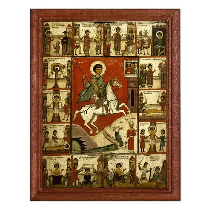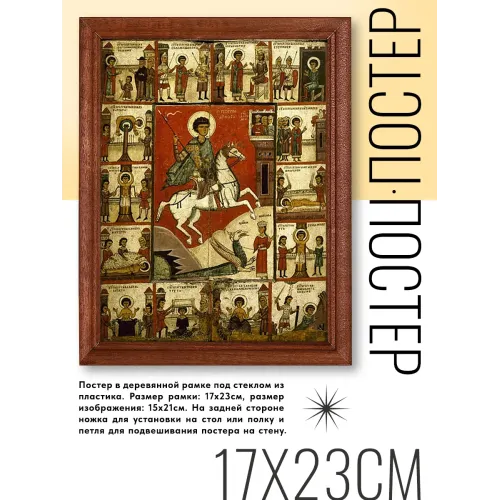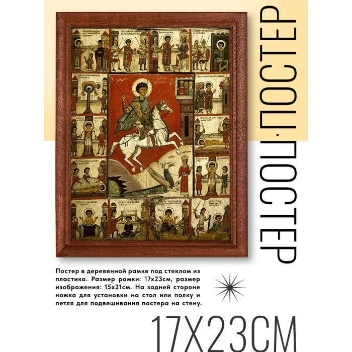 Постер в рамке 17х22см Чудо Георгия о змие с житием POSV-0130