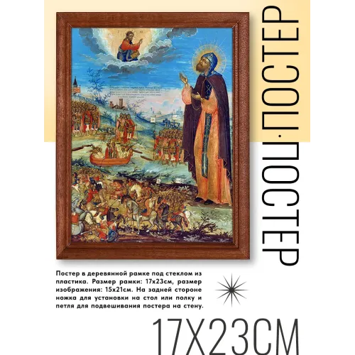 Постер в рамке с изображением Святого Александра Невского — это не только элемент декора, но и символ духовности и силы. Икона, помещенная в деревянную рамку под пластиковым стеклом, станет прекрасным дополнением интерьера любого помещения: от офисов до жилых пространств.