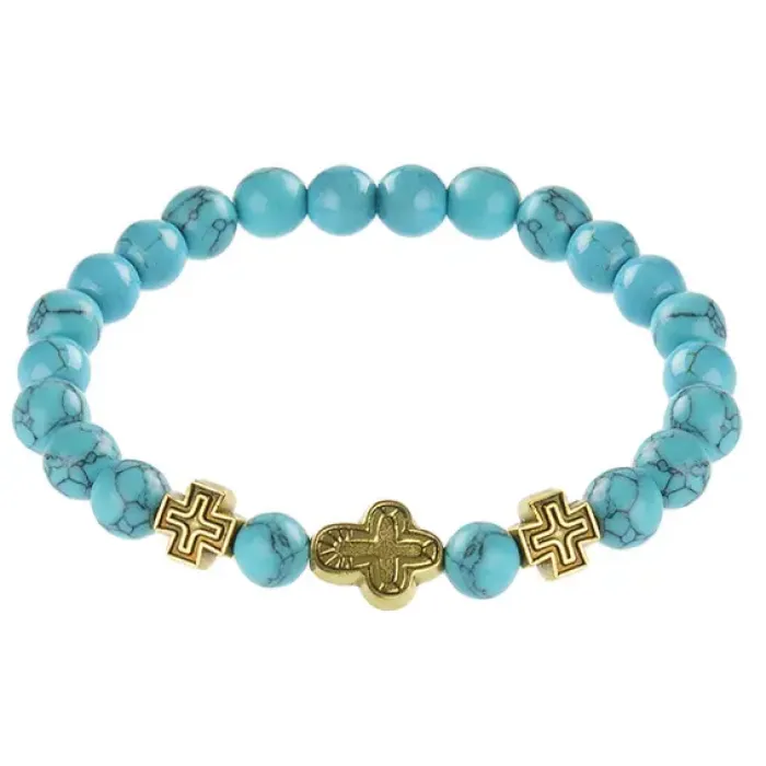 Браслет Спаси и сохрани с синт. камнем Бирюза BSV2-03