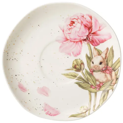 Для сохранения декоративных элементов с золотым напылением предпочтительно мытьё вручную. Дизайн с кроликами и цветами позволяет сочетать пару с другими предметами в романтичном или классическом стиле.