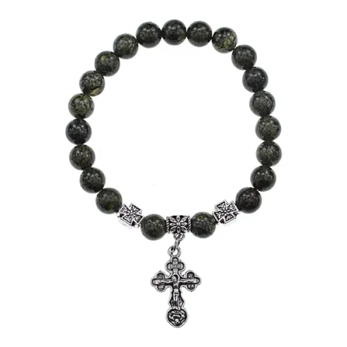 Браслет "Спаси и сохрани" — это православный стрейч-браслет, выполненный из натурального камня змеевика. Этот уникальный аксессуар не только украшает, но и символизирует защиту и духовную силу. Внутренний диаметр браслета составляет около 5,2 - 5,5 см, а диаметр каменных бусин — 8 мм.