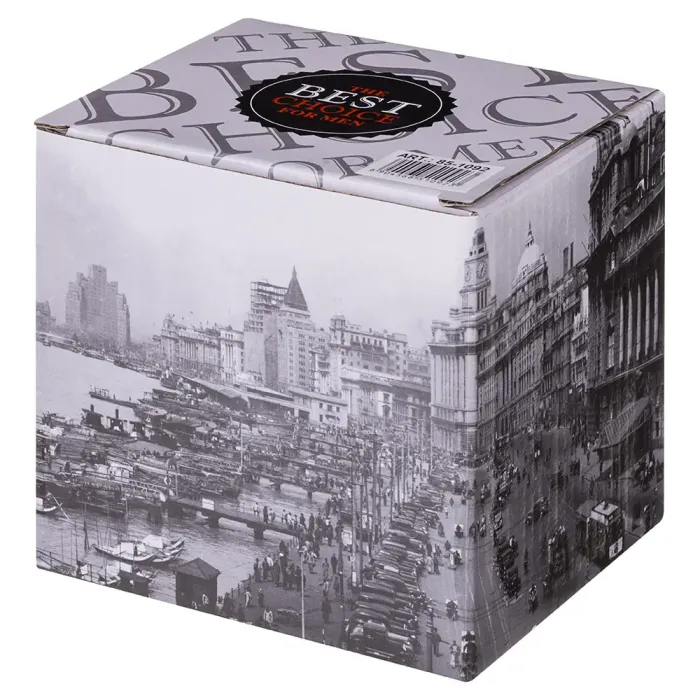 Кружка выполнена из высококачественного фарфора, что обеспечивает прочность и термостойкость. Гладкая поверхность материала способствует лёгкому очищению. Конструкция включает удобную ручку для комфортного использования.