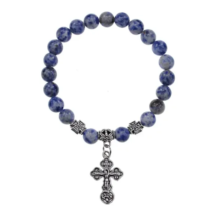 Браслет Спаси и сохрани — это православный стрейч-браслет, выполненный из натурального камня содалита. Этот уникальный аксессуар не только украшает, но и символизирует волю, мужество и женскую привлекательность. Внутренний диаметр браслета составляет около 5,2 - 5,5 см, а диаметр каменных бусин — 8 мм.