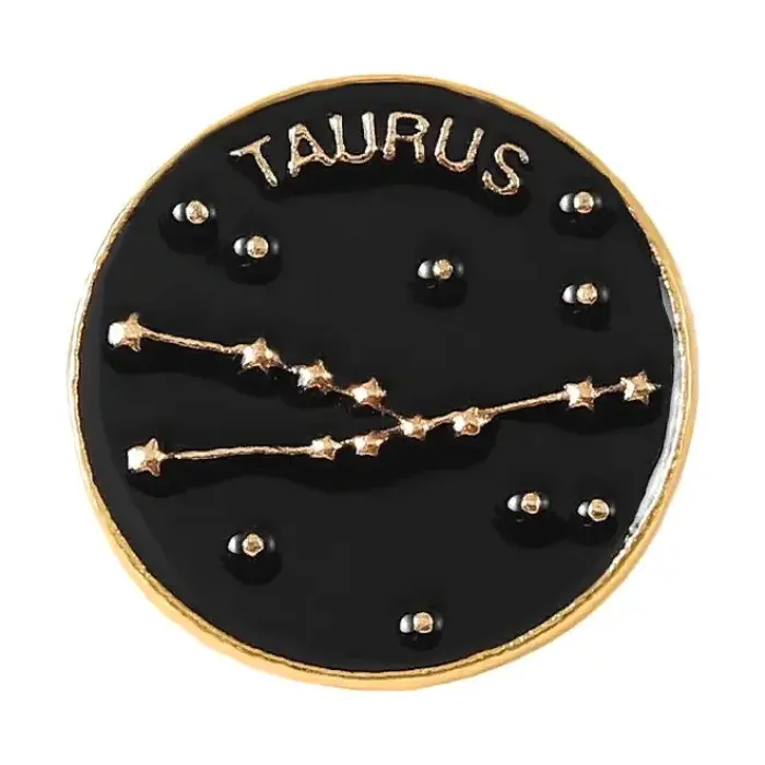 Значок Знаки Зодиака Телец — это стильный аксессуар, который станет отличным подарком для любителей астрологии и символики. Он выполнен из качественного металла с покрытием под золото и эмалью, что придаёт ему элегантный вид.