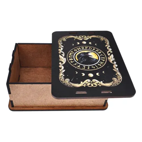 Деревянная шкатулка для хранения стандартной колоды карт Таро, изготовлена из ХДФ. Поставляется в разобранном виде.