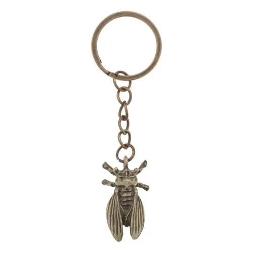 Брелок для ключей из бижутерного сплава с покрытием под бронзу в форме цикады.