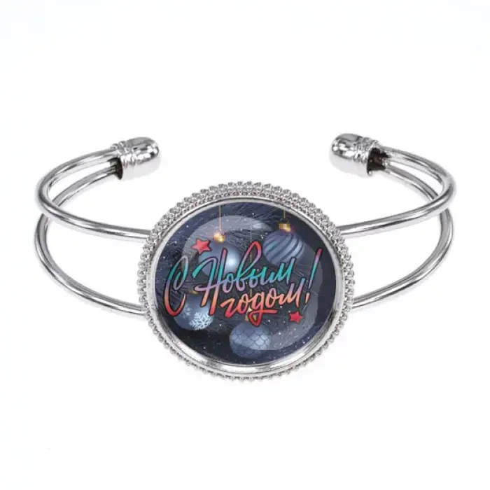 Браслет «С Новым годом!» — это стильный аксессуар, который станет прекрасным символом праздника и отличным подарком для близких. Изготовленный из бижутерного сплава с покрытием под серебро и стеклом, он привносит в образ нотки волшебства. Изображение диаметром 25 мм защищено выпуклой стеклянной линзой, что придаёт ему особую выразительность. Упакован в прозрачный пакет, этот браслет идеально подходит для презентации. Открытая форма делает его универсальным и подходящим для любого запястья.