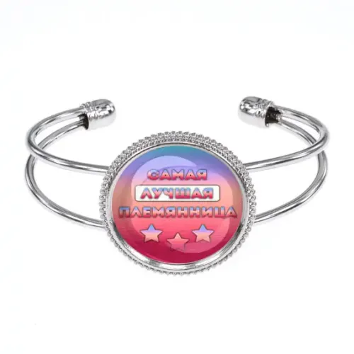 Браслет 'Самая лучшая племянница' — это изысканный аксессуар, который станет прекрасным подарком для любимой племянницы. Изготовленный из бижутерного сплава с покрытием под серебро и стекла, он сочетает в себе стиль и долговечность. Изображение диаметром 25 мм защищено выпуклой стеклянной линзой, что придаёт ему особую выразительность. Браслет имеет открытый (безразмерный) дизайн, что делает его удобным для ношения. Упакован в прозрачный пакет, он готов стать замечательным сюрпризом для любого праздника.